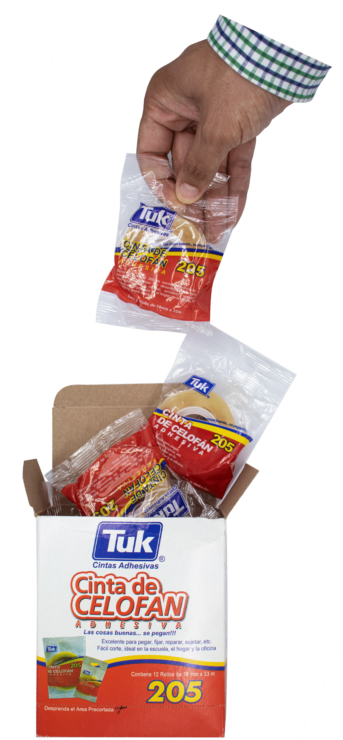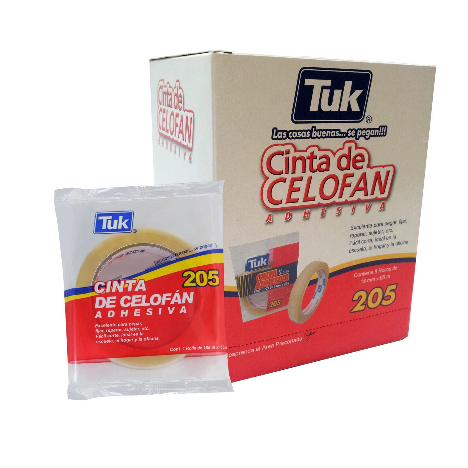 La Cinta de Celofán 205 es una cinta transparente de uso general, escolar y de oficina. Está fabricada con un respaldo de Película de Celofán y un adhesivo de Hule-Resina de alta calidad.
