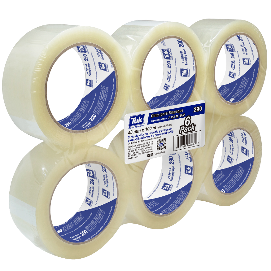 La Cinta 290 es una cinta de sellado de 2.0 mil fabricada con película de BOPP y cubierta con un adhesivo Acrílico base agua sensible a la presión. Su composición polimérica le confiere alta resistencia al envejecimiento, a la intemperie y a la luz UV, asegurando la integridad del sellado a largo plazo.