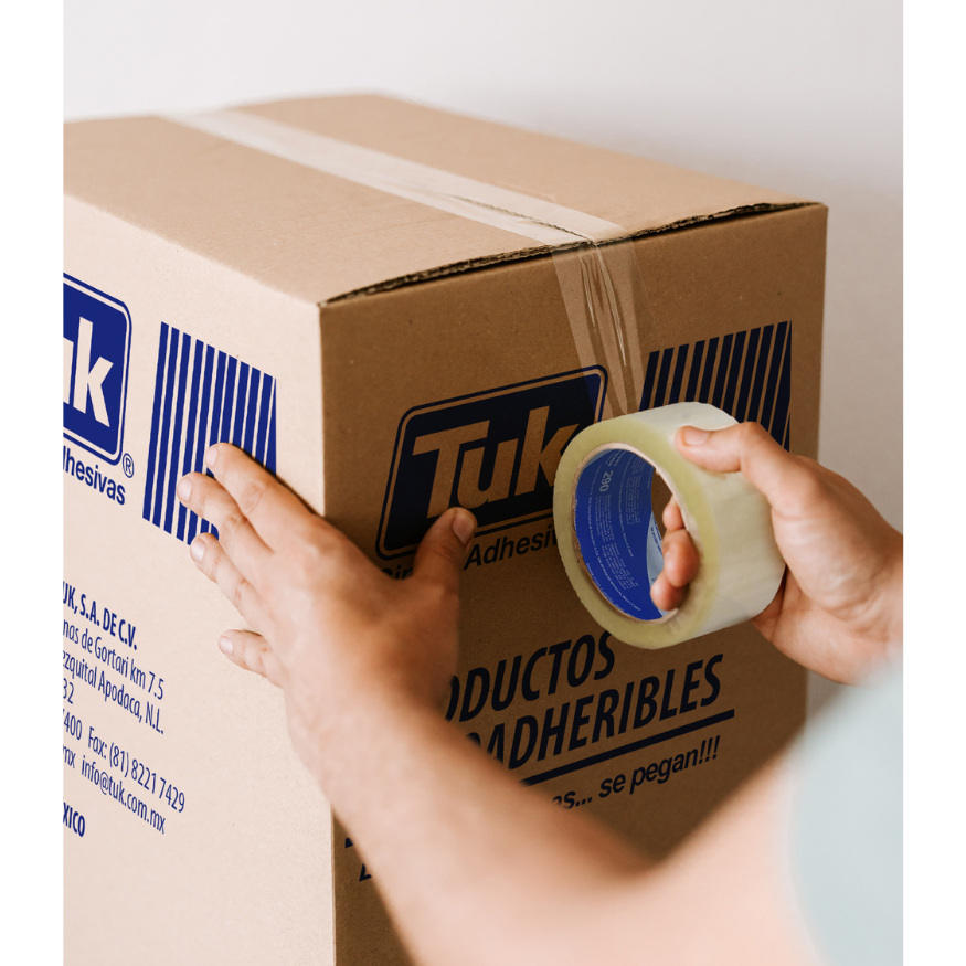 Su aplicación principal es el cerrado y sellado de cajas de cartón corrugado de peso mediano en entornos logísticos e industriales. Este producto cumple con la regulación FDA CFR 21 175.105 para contacto indirecto con alimentos.
