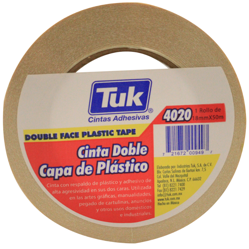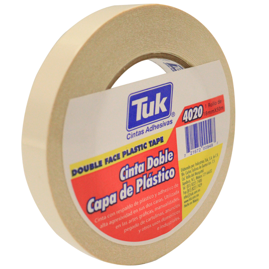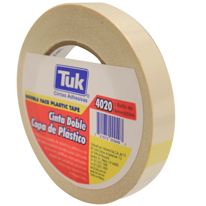 La Cinta Doble Capa de Poliéster 4020 está clasificada para exigencia media, siendo una solución versátil y eficiente para una amplia gama de aplicaciones. Su diseño se basa en un respaldo de Poliéster con adhesivo de Hule-Resina aplicado en ambas caras.