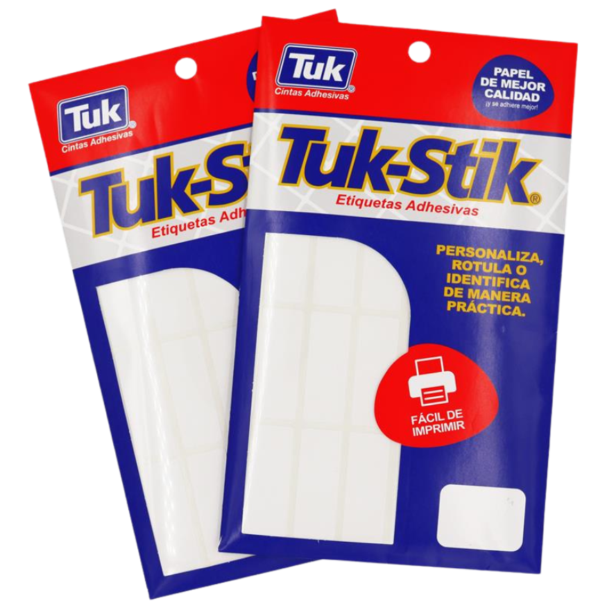 Las etiquetas Tuk-Stik son la solución ideal para organizar, etiquetar e identificar de forma fácil y práctica. Con un papel de mejor calidad y mayor adhesión, garantizamos que se pegarán firmemente y que tu información será clara. Además, son fáciles de imprimir, incluso puedes imprimir online para un proceso aún más sencillo. ¡Simplemente personaliza, imprime y pega!